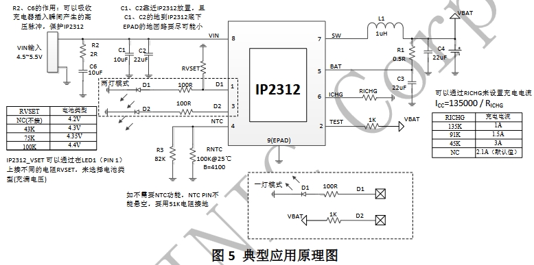 輸入電壓適應性:IP2312的輸入電壓范圍為4.5V~5.5V,能夠兼容常見的5V USB適配器,方便用戶使用標準電源為18650電池充電。
