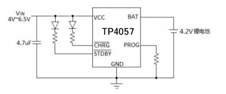 TP4057:輸入電壓范圍較寬,為4.5V至6V。這意味著它能夠適應(yīng)更多種類的電源適配器,包括一些輸出電壓稍高的適配器,為設(shè)計(jì)提供了更大的靈活性。