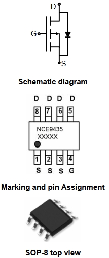 NCE9435采用先進的溝槽技術,提供優異的Rps(on),低柵極電荷和低至4.5V的柵極電壓操作。該器件適用于負載開關或PWM應用。