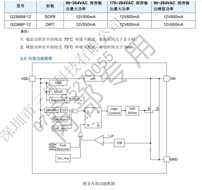 G2366P-12非隔離12V550mA直插DIP7開(kāi)關(guān)電源芯片