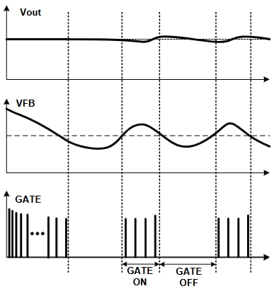 當負載減輕時,LP8773H進入“數字頻率監控”模式。在這種模式下,系統頻率會在最高限制頻率和最低限制頻率之間動態調整。芯片通過內置的數字計數器選擇和鎖定谷底,從而實現高效的功率轉換。這種模式特別適合輕載或小功率輸出場景,能夠顯著降低系統的功耗。