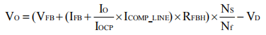 其中,NP和NS分別為變壓器的初級和次級匝數(shù),RFBH1和RFBH2為FB外接的上偏電阻,VFB為基準(zhǔn)電壓(通常為1.2V)。