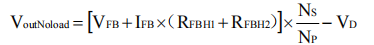 在三繞組應(yīng)用中,輕載輸出電壓VoutNoload的計(jì)算公式為: