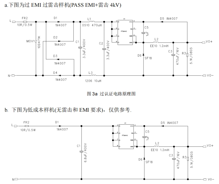 b.下圖為低成本樣機(jī)(無(wú)雷擊和 EMI 要求),僅供參考