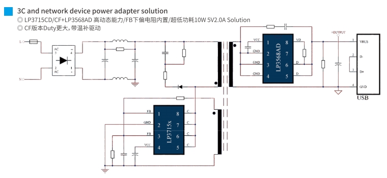 10W 3C網絡設備電源適配器解決方案(LP3715系列的高效應用)