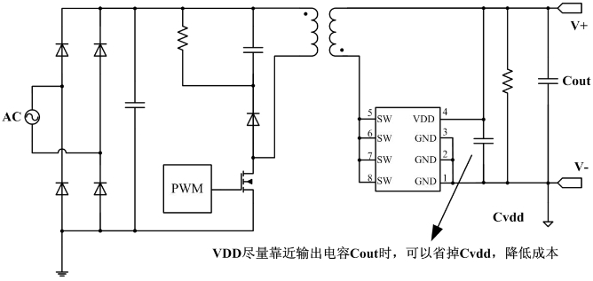 寬電壓范圍:芯片兼容DCM(斷續(xù)電流模式)或QR(準諧振模式)反激開關,適用于不同的電源設計需求。