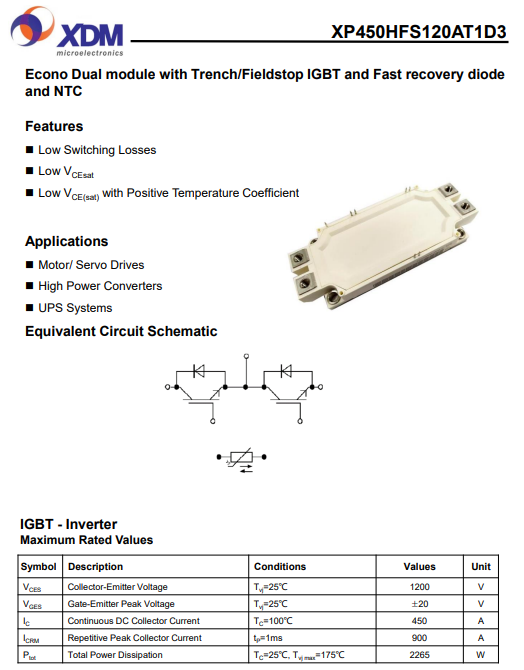 XP450HFS120AT1D3芯達(dá)茂 國產(chǎn)IGBT 功率模塊 450A 1200V