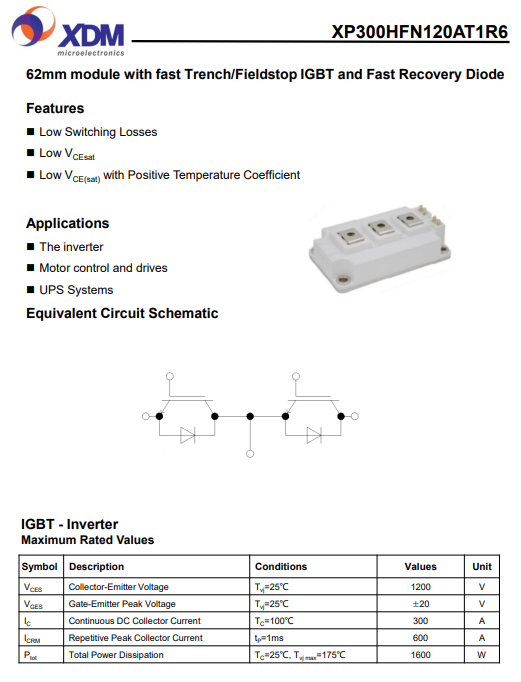 XP300HFN120AT1R6 芯達(dá)茂 國產(chǎn)IGBT 功率模塊 300A 1200V 62mm
