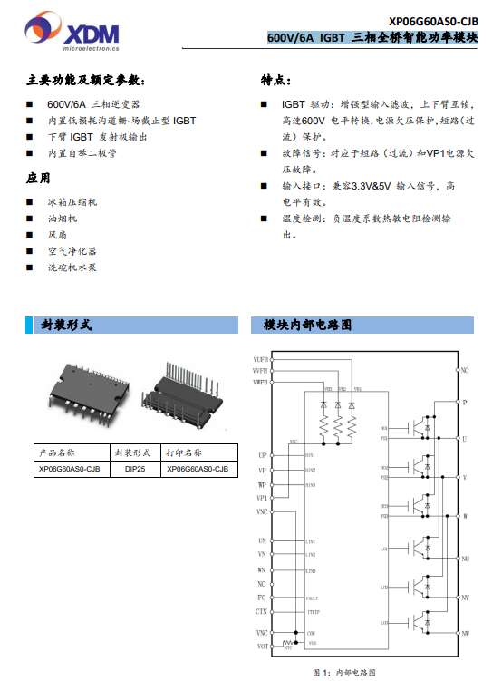 XP06G60AS0-CJPL 芯達茂 國產(chǎn)IGBT 三相全橋智能功率模塊